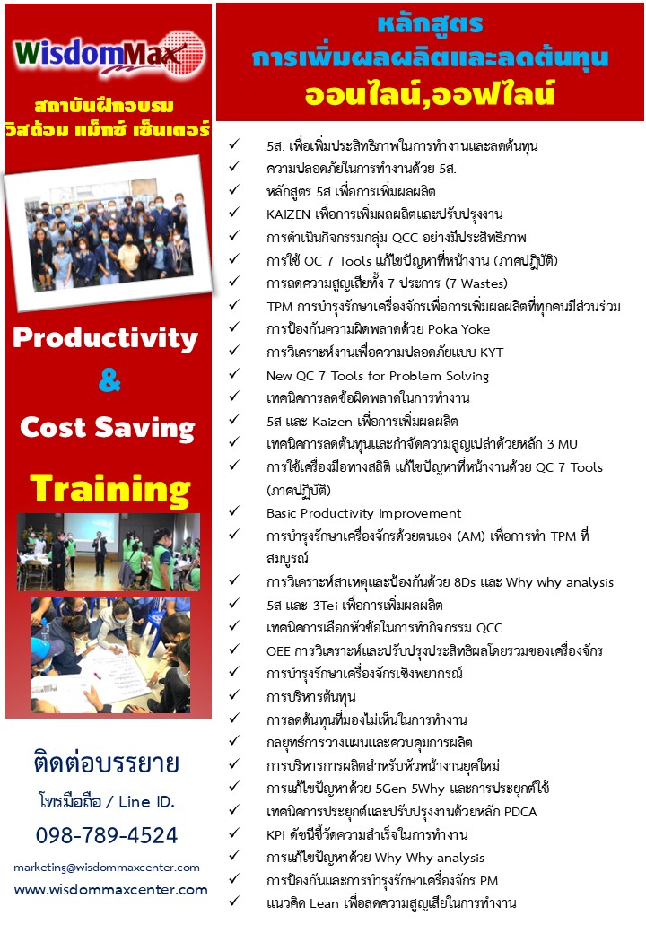สามารถติดต่อขอใบเสนอราคาในหลักสูตรที่สนใจที่หมายเลย 098-789-4524